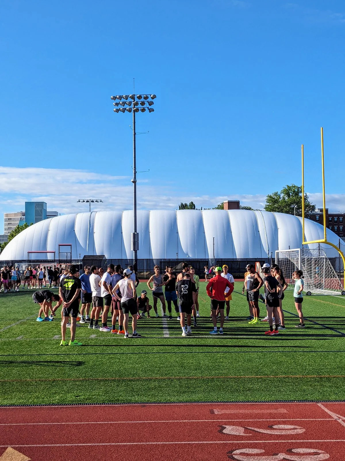 MIT Track is a standard 400-meter outdoor track at Briggs Field in Cambridge. It’s one of the most popular informal track workout spots in the Boston area because it’s easy to access, centrally located, and surrounded by great warm-up/cool-down routes along the Charles River Esplanade. It is usually open to the public when not reserved for official practices or events. Many local runners and run clubs (such as Heartbreak Run, Tracksmith) drop in early mornings, evenings, and weekends for speed workouts.