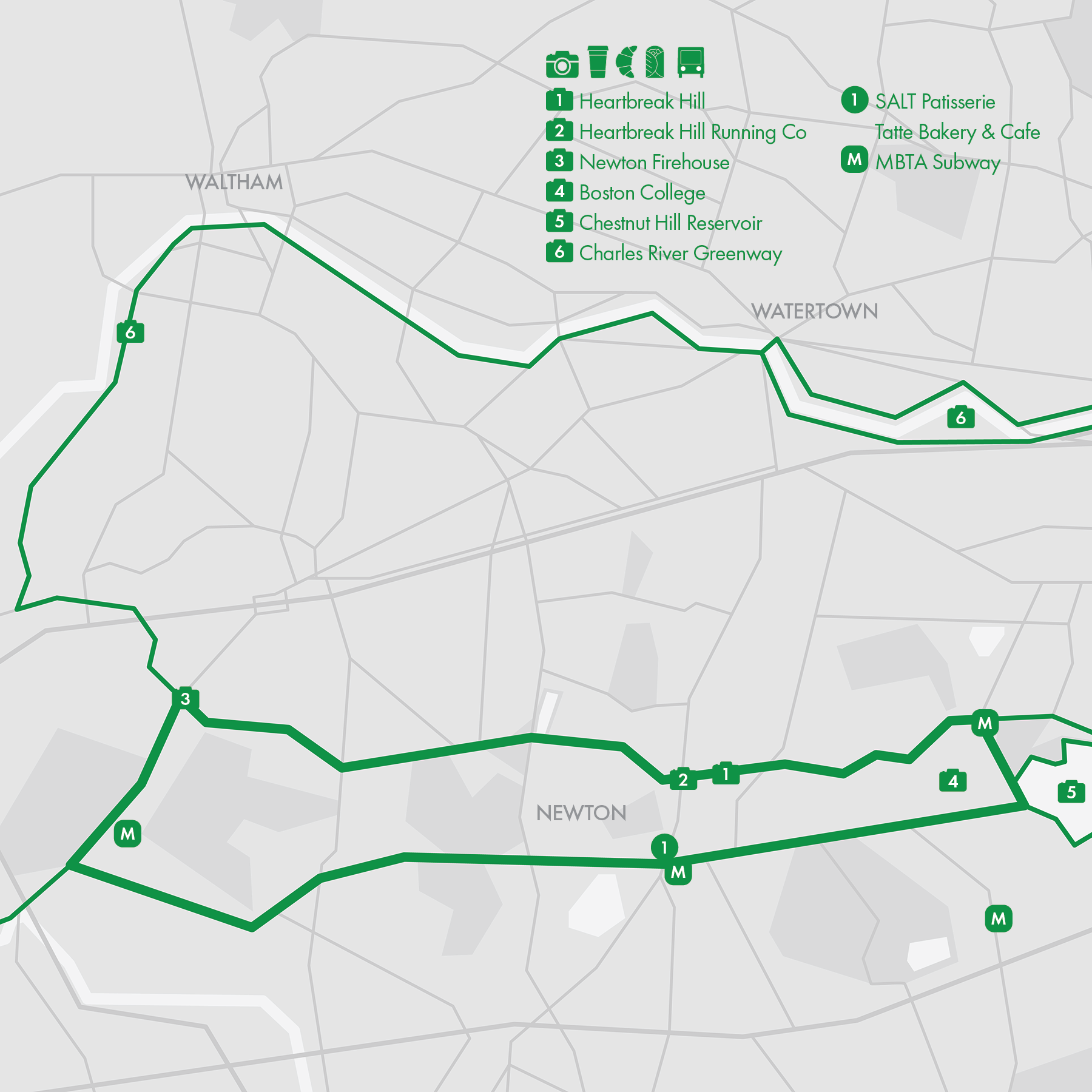 • Start & Finish: Heartbreak Hill Running Company or Newton Centre