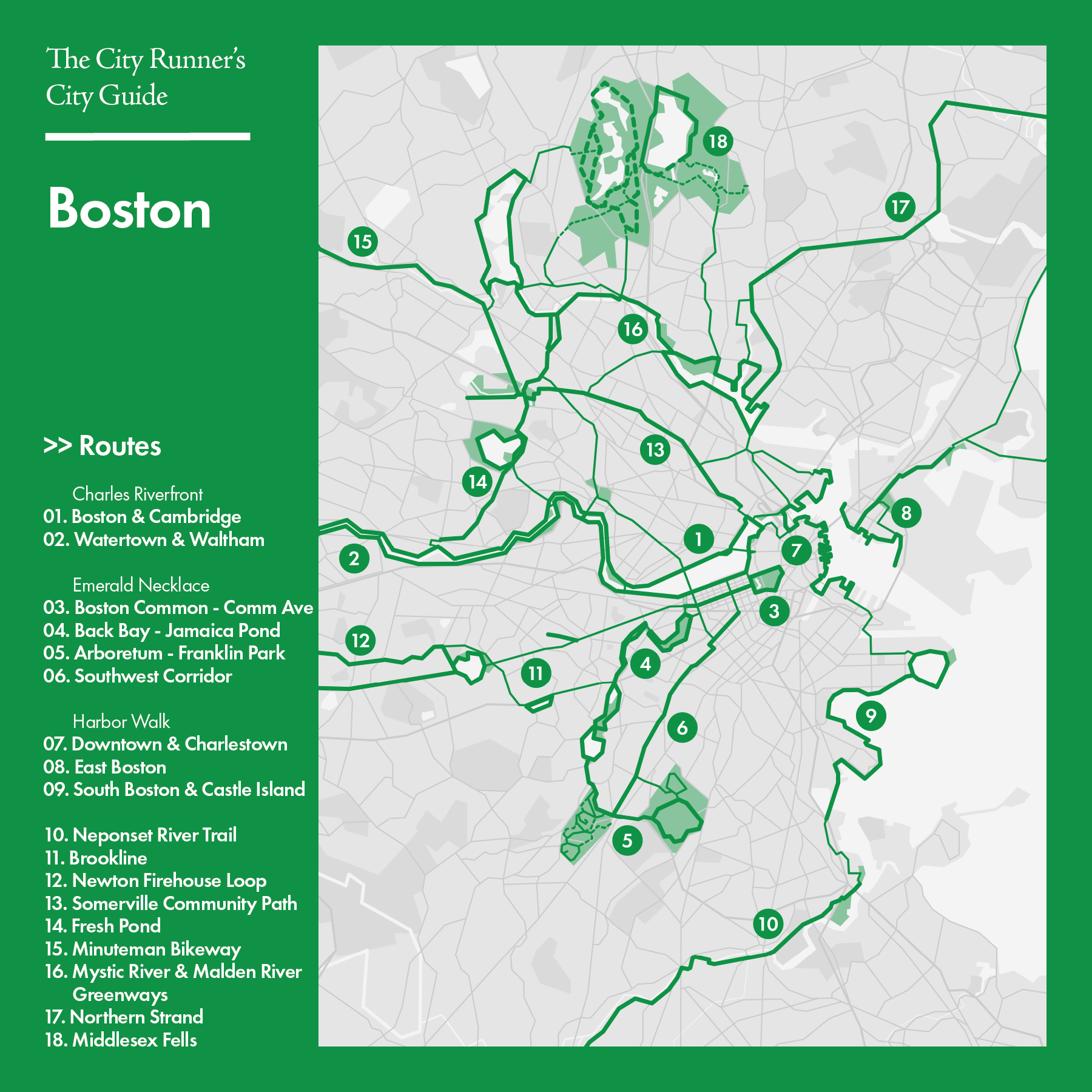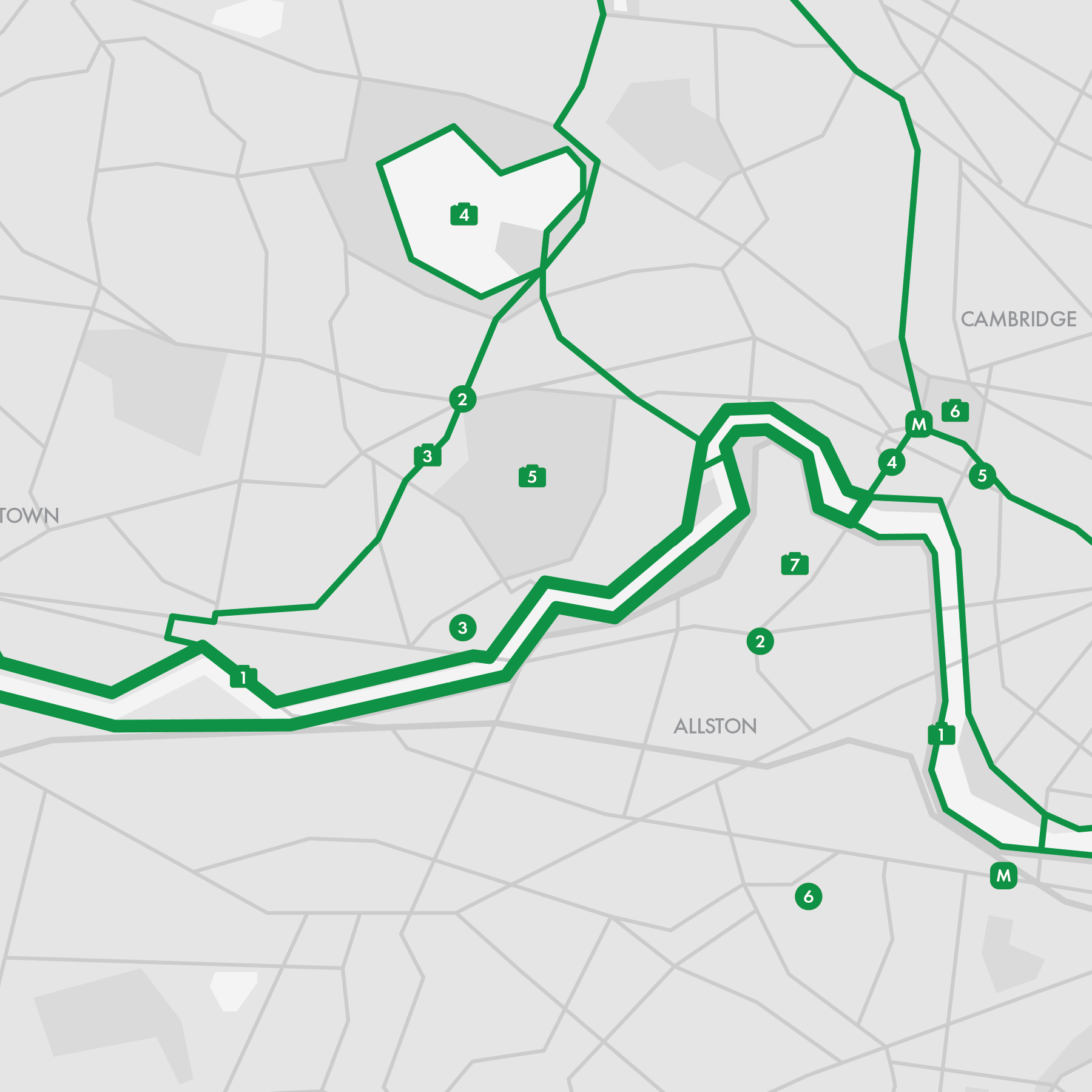 For longer runs, connect Mystic River Greenway with Somerville Community Path (Route #13), Alewife Brook Greenway (Route #14), or Minuteman Bike Path (Route #15).