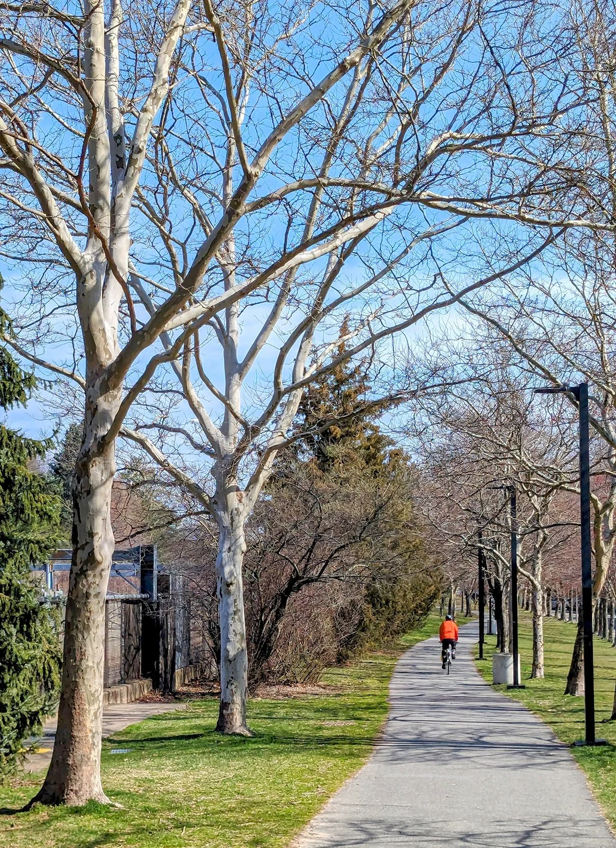 Beyond Somerville Junction Park, the trail widens and transitions into a more residential area. This portion is lined with greenery, offering multiple access points, and tends to be more populated with walkers, cyclists, and other trail users. Reducing speed in this segment is advisable due to the increased foot traffic.