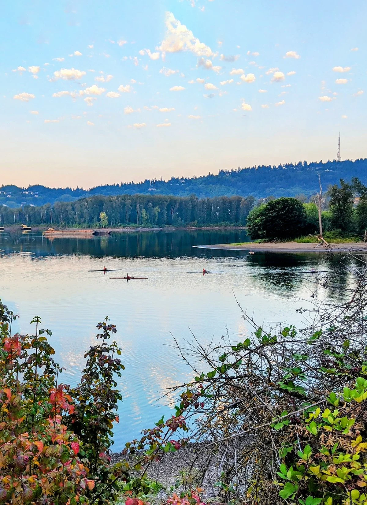 The lake is surrounded by private properties so the route isn't really lakefront. It does have relaxing suburban scenery, and from time to time beautiful views of the lake. While there isn't a lot to check out along the route, make sure to visit Foothills Park and George Rogers Park by the Willamette. For more adventures in nature, Tryon Creek State Natural Area is a large park not far from the lake; and Mary S Young Park a few miles south on the way to Oregon City.
