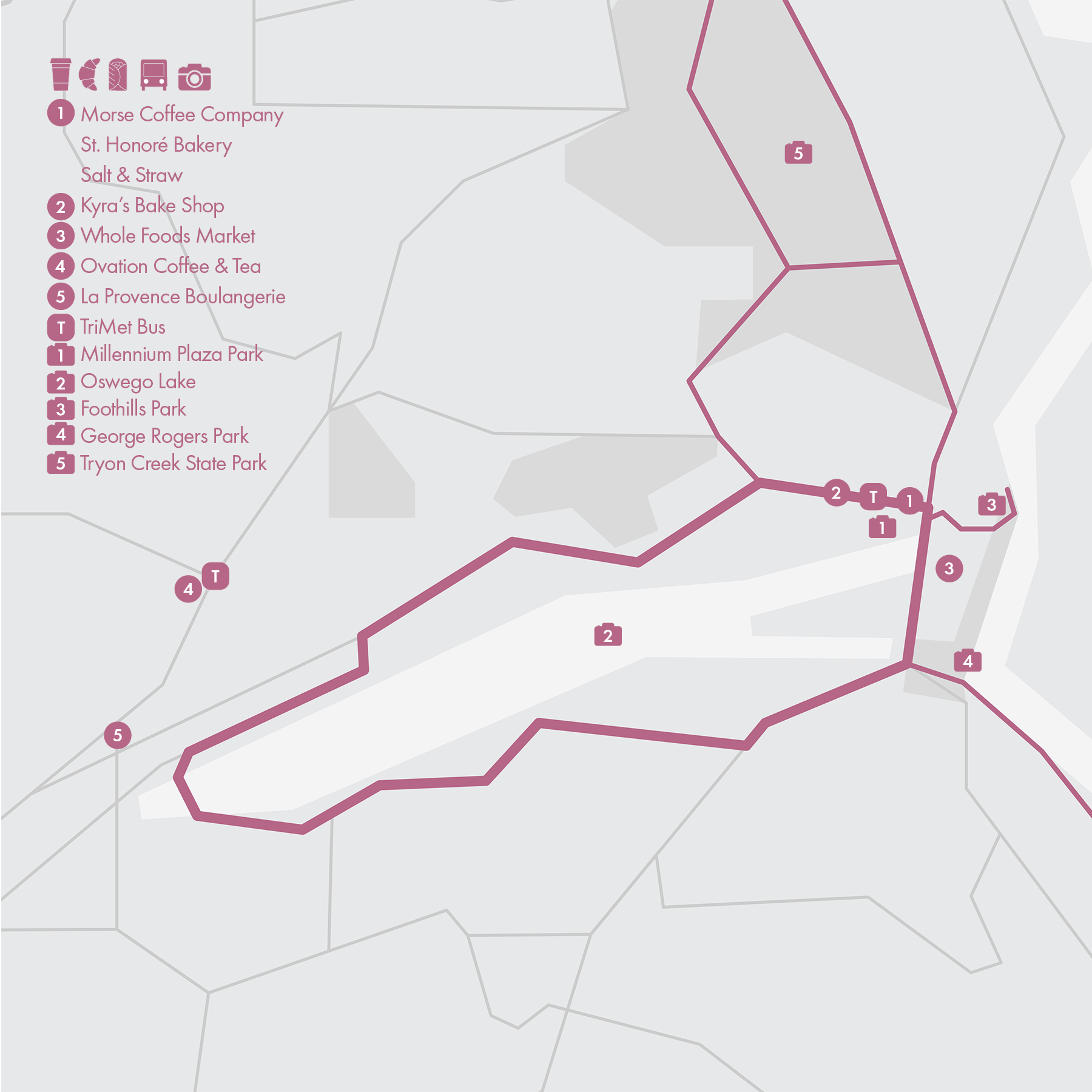Cafe / The start and finish of this route are the best areas to grab a cup of coffee. Portland's Sellwood neighborhood has plenty of food options along SE 13th St. Oregon City's center spans several blocks at Willamette riverfront, with more local spots on 7th St up the hill.