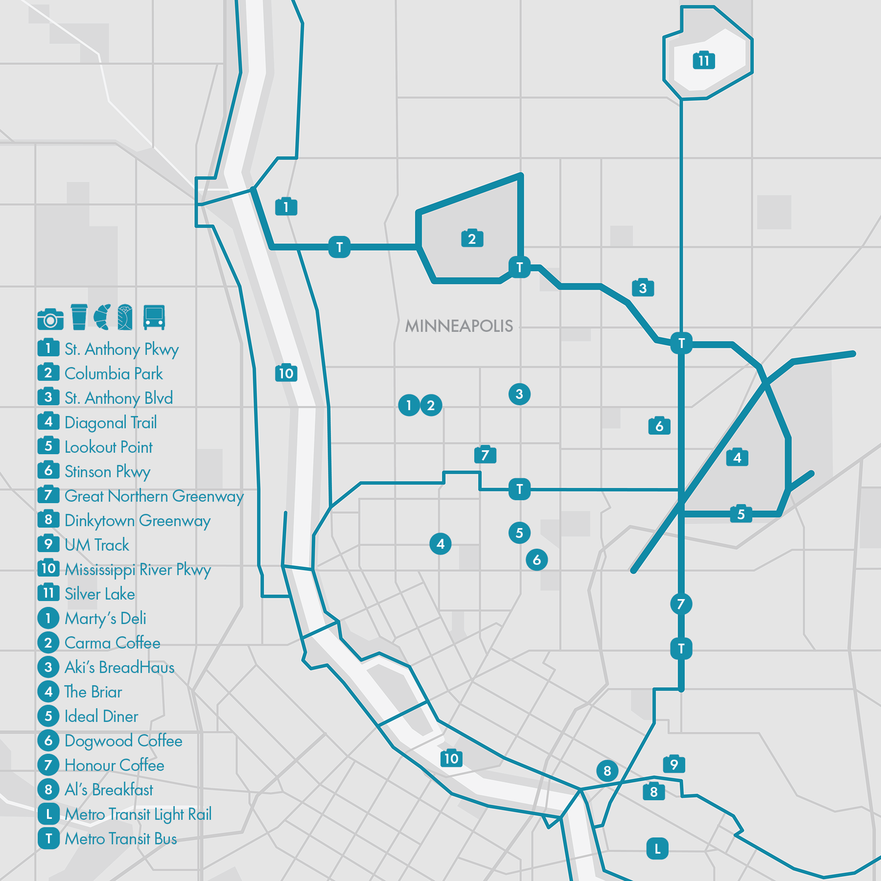 Cafes / Great cafes are plentiful around the lakes, particularly in the Uptown neighborhood. One of my all-time favorites is Black Walnut Bakery near Bde Maka Ska.